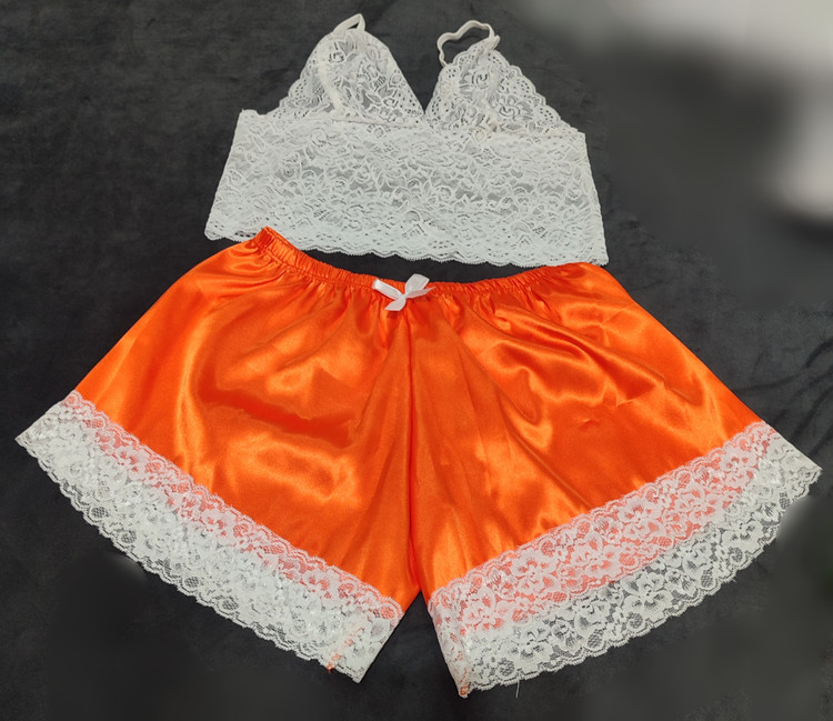 ست نیم تنه گیپور و شلوارک ساتن ال ایکس